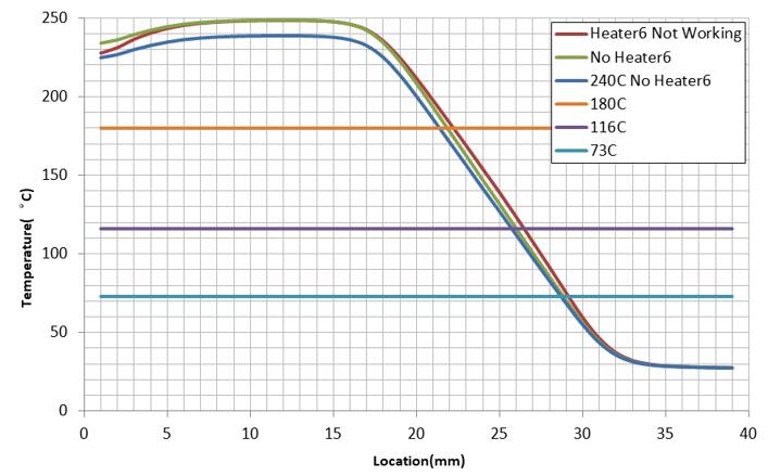 上文中提到,仿真結(jié)果需要體現(xiàn)輸料管中的溫度分布,故在后續(xù)工藝時對輸料管的溫度隨位置變化的曲線進行展示如下。